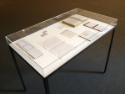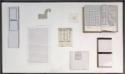 Medium/Materialsseven found items (book, 3 pieces of cardboard packaging, painted metal, folded paper, paper with an "x" drawn on it) and a drawing by A.Y. Jackson (1985.51.12), presented in a custom-made vitrine